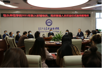 11月16日上午,我校在行政楼四楼第二学术报告厅隆重举行2021年新入职辅导员、党政管理人员欢迎仪式暨岗前培训,党委副书记施纪华,党委委员、副校长格根哈斯,学校部分学院、部门负责人,今年新入职教师参加了本次活动。仪式由校党委委员、教师工作部(人事处)李怀军部长(处长)主持。