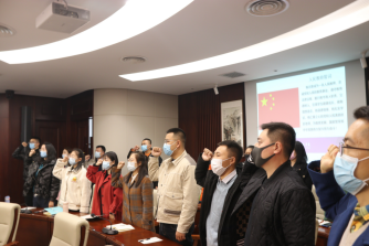 全体新入职辅导员、党政管理人员在师德师风承诺书签字,面向国旗举行人民教师宣誓仪式,格根哈斯副校长领誓。
