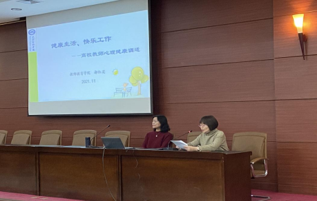 11月29日下午,为帮助我校教职工普及心理健康知识,提高对心理健康重要性的认识,引导教职工树立健康科学的生活方式,更好地调适工作生活方面的压力,面向全体教职工举办主题为“健康生活 快乐工作—高校教师心理健康调适”的心理健康专题讲座,是包头师范学院工会“关爱教职工心理活动”系列活动之一。