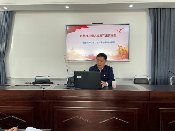 宣讲中,双山同志系统解读了党的十九届六中全会的重大意义、主要成果和《决议》的丰富内涵、精神实质和核心要义。他强调,党的十九届六中全会是在建党百年的关键历史节点召开的具有重大深远意义的重要会议,学习贯彻全会精神是当前和今后一个时期的重大政治任务,我们要深入学习贯彻全会精神,深刻领会我们党百年奋斗的辉煌历程、伟大成就、历史意义、历史经验,特别是“两个确立”的决定性意义,坚决把思想和行动统一到习近平总书记重要讲话和十九届六中全会精神上来。