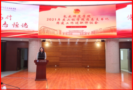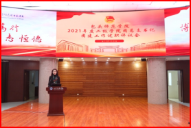 团委书记刘晓娟总结讲话中充分肯定了一年来各团总支工作的努力和取得的成绩。对各学院2021年团建工作完成情况、亮点工作进行了点评,并对存在问题、整改方法等提出了具体的要求。