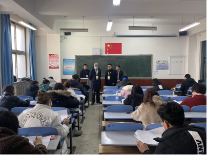 2021-2022学年第一学期期末考试正在进行,校党委书记王永明、校长金桩、党委委员副校长王有亮、党委委员副校长格根哈斯等在教务处相关负责同志陪同下,对期末考试考场进行了现场巡视。