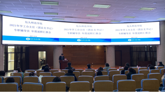 为进一步加强学校辅导员工作队伍建设,全面总结、展示、评价各学院2021年度学工办主任(团总支书记)、专职辅导员工作开展情况。12月24日下午,我校举办了2021年学工办主任(团总支书记)、专职辅导员年度述职汇报会。党委委员、副校长格根哈斯到场指导,由学校相关部门负责人组成的考核工作小组对全校学工办主任(团总支书记)、专职辅导员进行评议,学生工作相关职能部门科室负责人以及全校16个学院的学工办主任(团总支书记)、专职辅导员参加汇报会,会议由学生工作部部长薛志东主持。