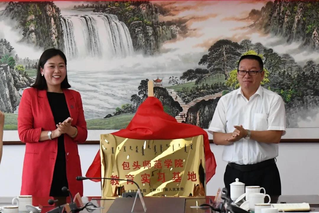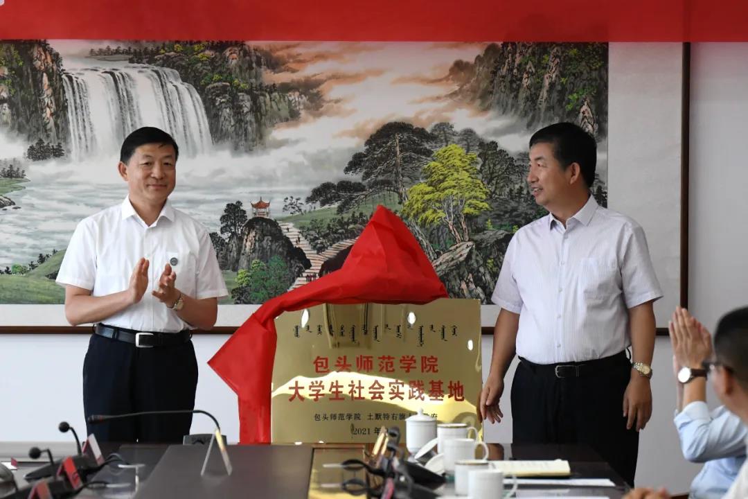 我校党委副书记施纪华和土默特右旗旗委常委、常务副旗长张慧东为大学生社会实践基地揭牌