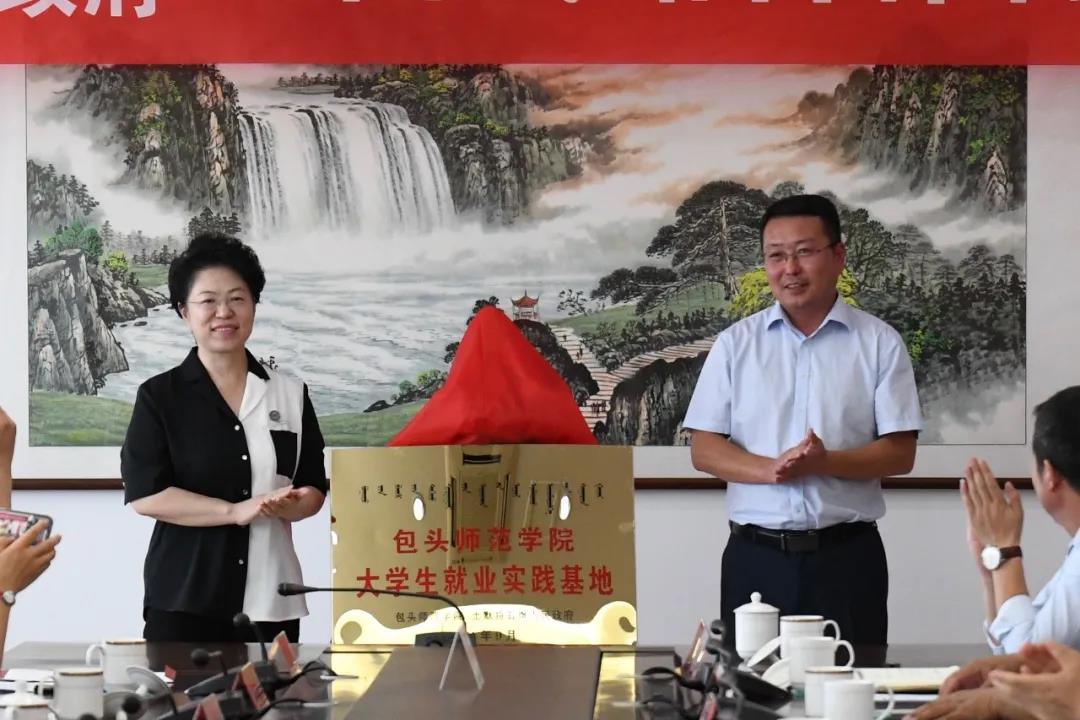 我校党委委员、组织部部长史瑜和土默特右旗政府副旗长金力,为大学生就业实践基地揭牌