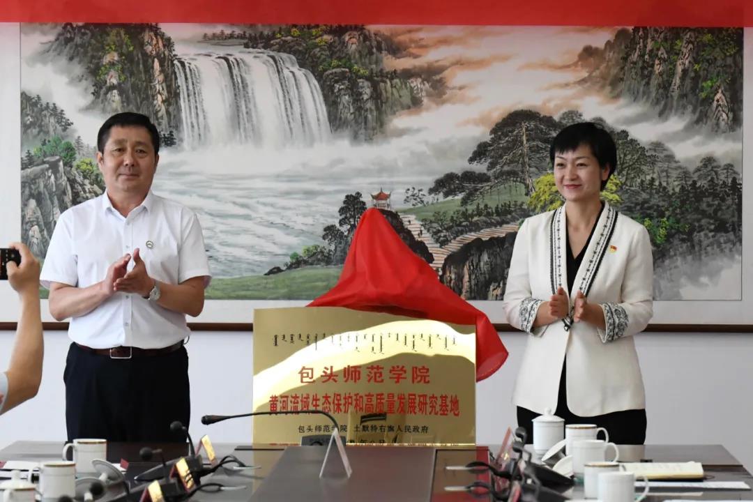 我校党委委员、副校长双山和土默特右旗旗委常委、政府副旗长冯桂莎,为黄河流域生态保护和高质量发展研究基地揭牌
