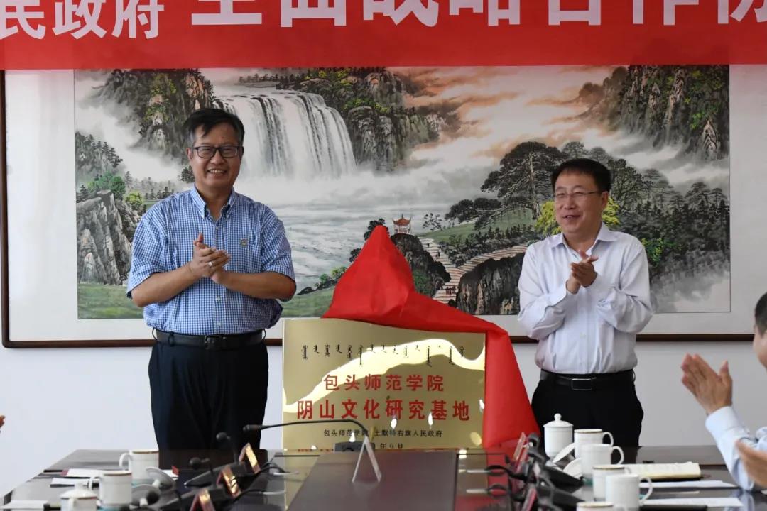 我校校长金桩和土默特右旗旗委书记张雨为阴山文化研究基地揭牌
