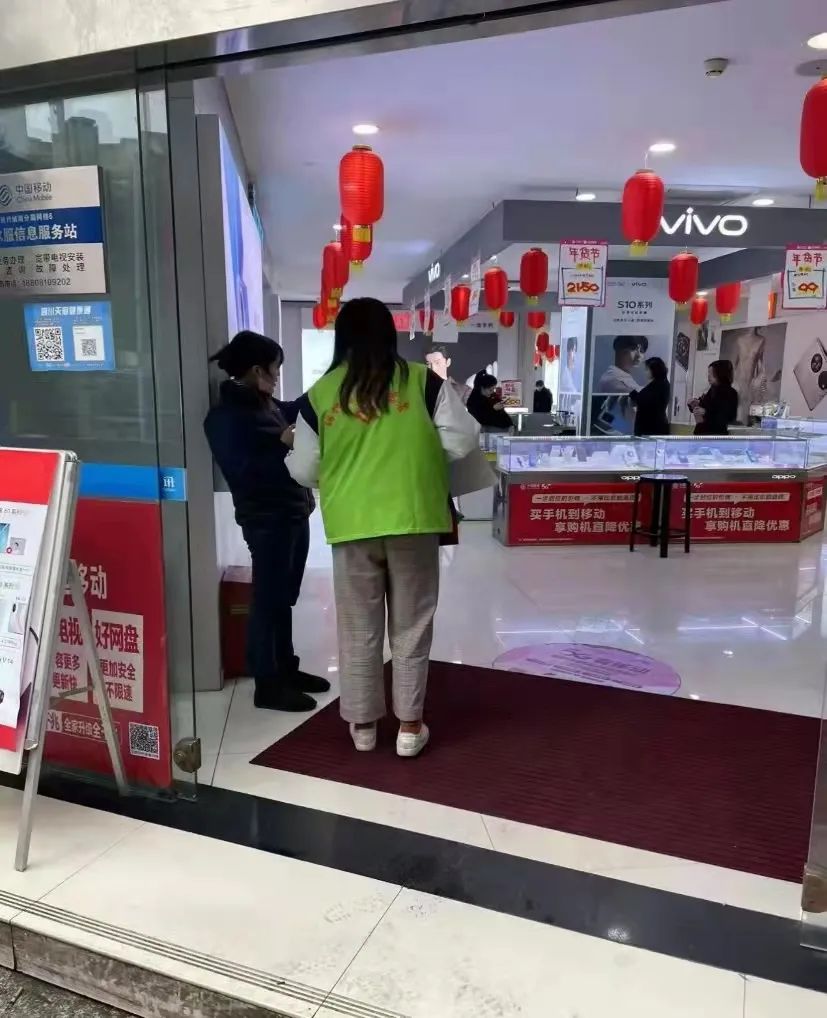 数学科学学院2020级数学与应用数学二班谭睿瑶协助店铺做好防疫工作。