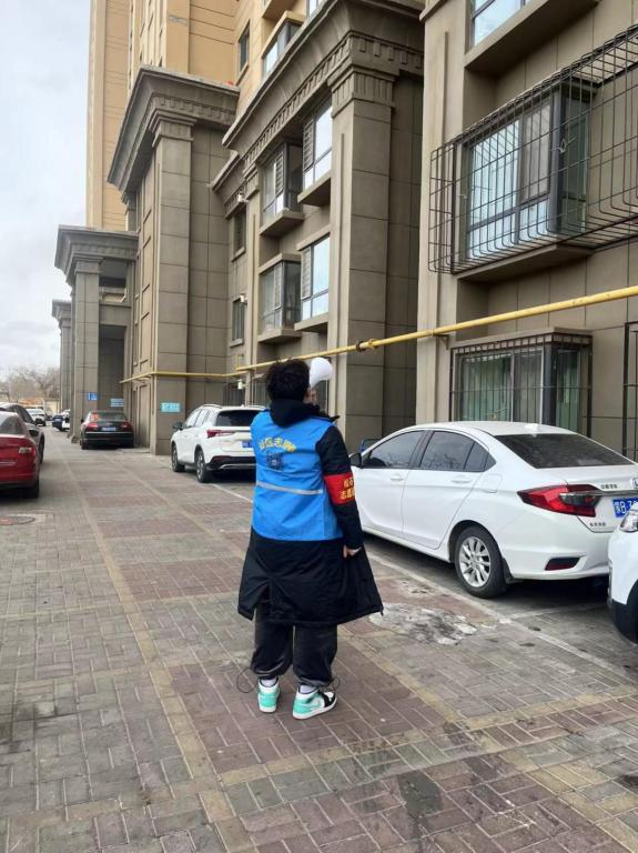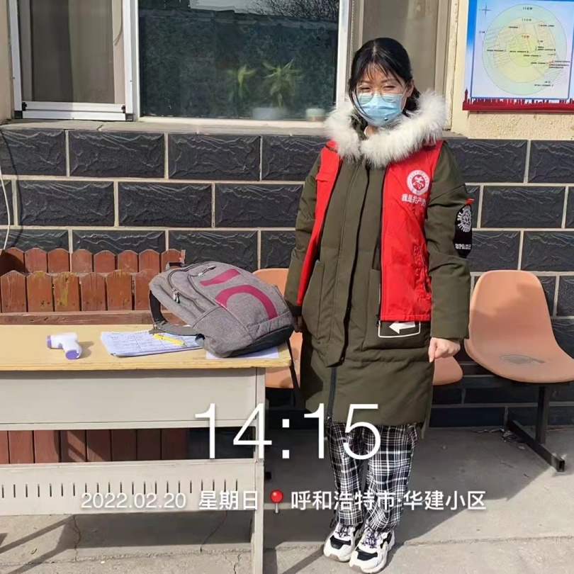 信息科学与技术学院2018级国际班石庭毓,在呼和浩特市华建小区参加小区疫情防控志愿服务工作。