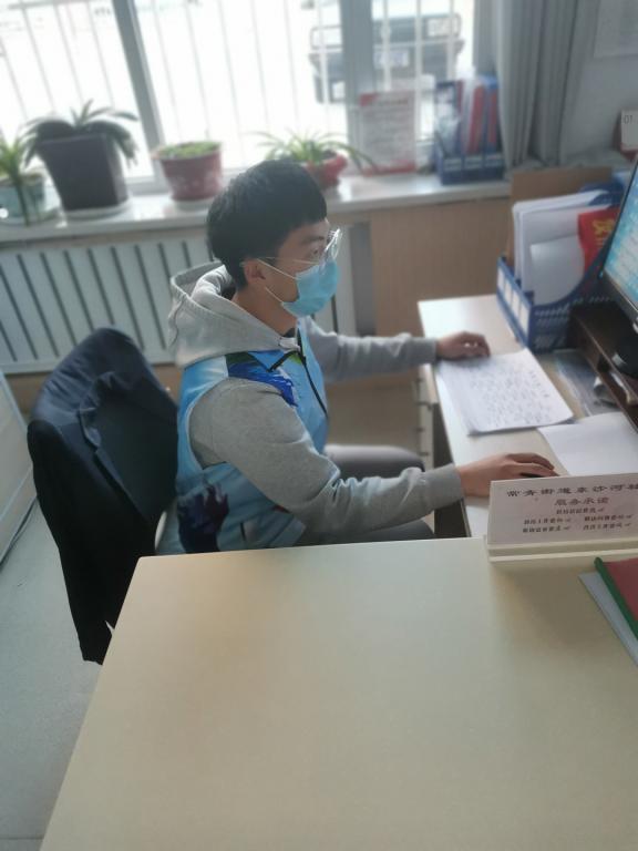 信息科学与技术学院2019级刘书宇,在呼和浩特市新城区参与了中山东路社区疫情防控,负责疫情期间人员登记和信息统计。