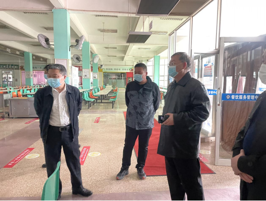 在学生食堂,王永明书记详细了解了食品原材料供应、饭菜种类、就餐人数、就餐时间等情况。针对食堂内环境消杀工作、从业人员行程管理、食堂防疫物资准备、食堂疫情防控应急预案、学生返校后实行错时错峰就餐等情况,他提出指导意见。他强调,学生餐饮是最大的民生工作,要坚持学生需求导向作用,充分发挥餐饮企业的作用,围绕学生抓好餐饮工作,千方百计为学生提供价廉物美的饮食,在为党育人,为国育才做出后勤处应有的贡献。