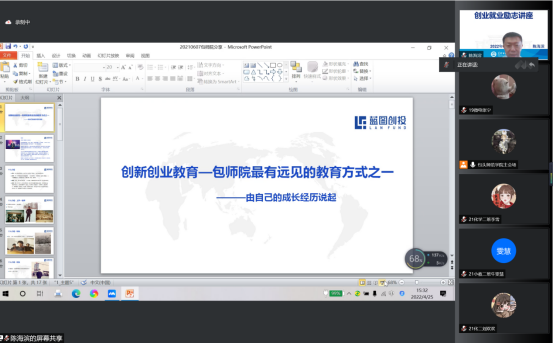 最后,生物科学与技术学院1988级校友、太阳帆创投董事长陈海滨作了创业就业励志讲座,回顾了从母校开始的创新创业经历,分享了如何选择创新创业项目、如何提高创新创业能力,提出了创新创业的方法和路径,整个讲座朴实无华,深入浅出,耐人寻味,得到广大师生的高度认可。(创新创业教育学院 、招生就业处、学生工作部、团委、档案馆)