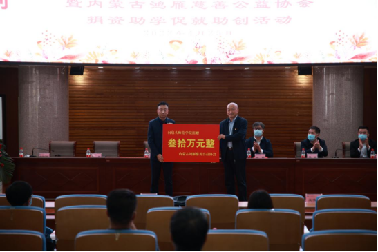 内蒙古鸿雁慈善公益协会为我校捐赠助学助创资金30万元。