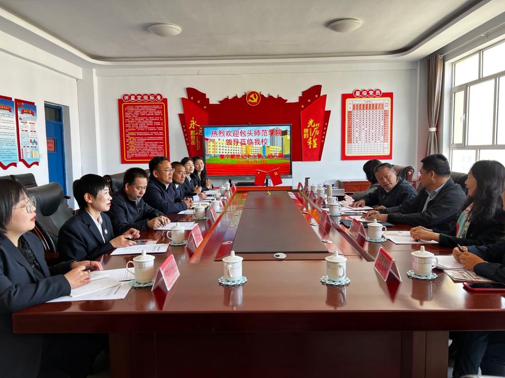 王永明书记在座谈交流时指出,包头师范学院与两校渊源深厚、交往频繁,两位校友都是学校的优秀毕业生,都在教育战线上做出了突出贡献。两校办学历史悠久、办学力量雄厚、办学条件优良、办学成果丰硕,在乌兰察布地区享有盛誉。此次开展“访企拓岗促就业”专项行动,旨在调研基础教育发展情况,听取用人单位对我校的意见和建议,希望双方进一步拓宽合作领域和深度、携手共进,充分发挥双方优势资源,精准对接彼此办学需求,塑造校际深度合作典范,不断培养出满足社会期待、适应社会需求、能够长期扎根地方教育一线的优秀人才,服务地方经济社会发展,谱写高等教育与基础教育融合发展的新篇章。