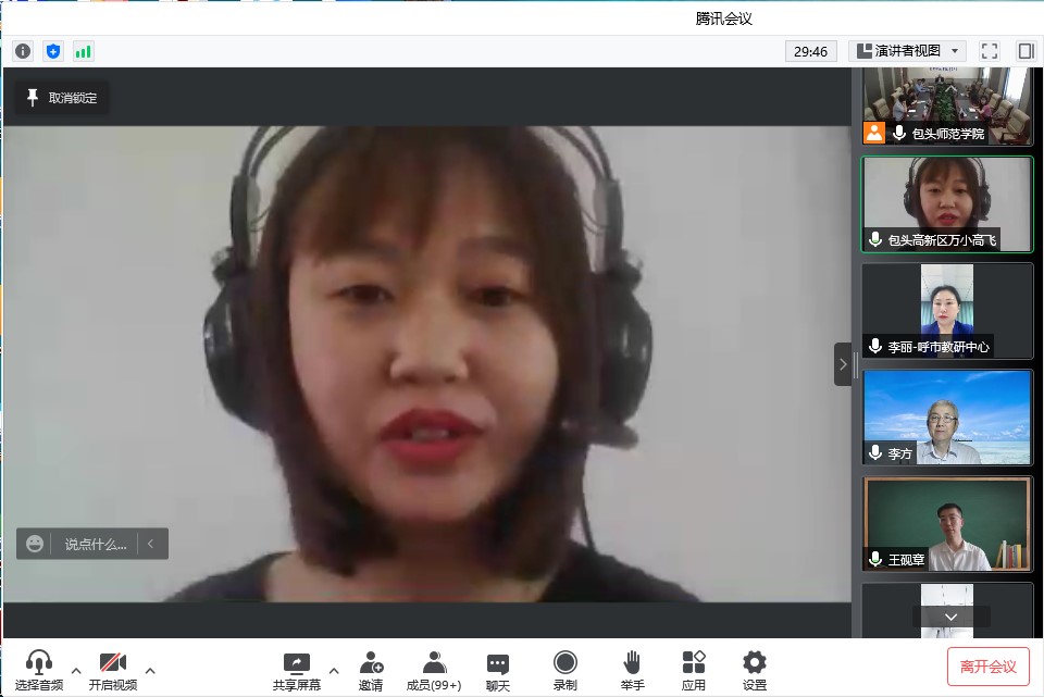 骨干班主任培训班学员、包头市稀土高新区万水泉小学高飞老师,幼儿园教师团队研修培训学员、呼和浩特市教育教学研究中心教研员李丽老师代表学员分别进行了表态发言。
