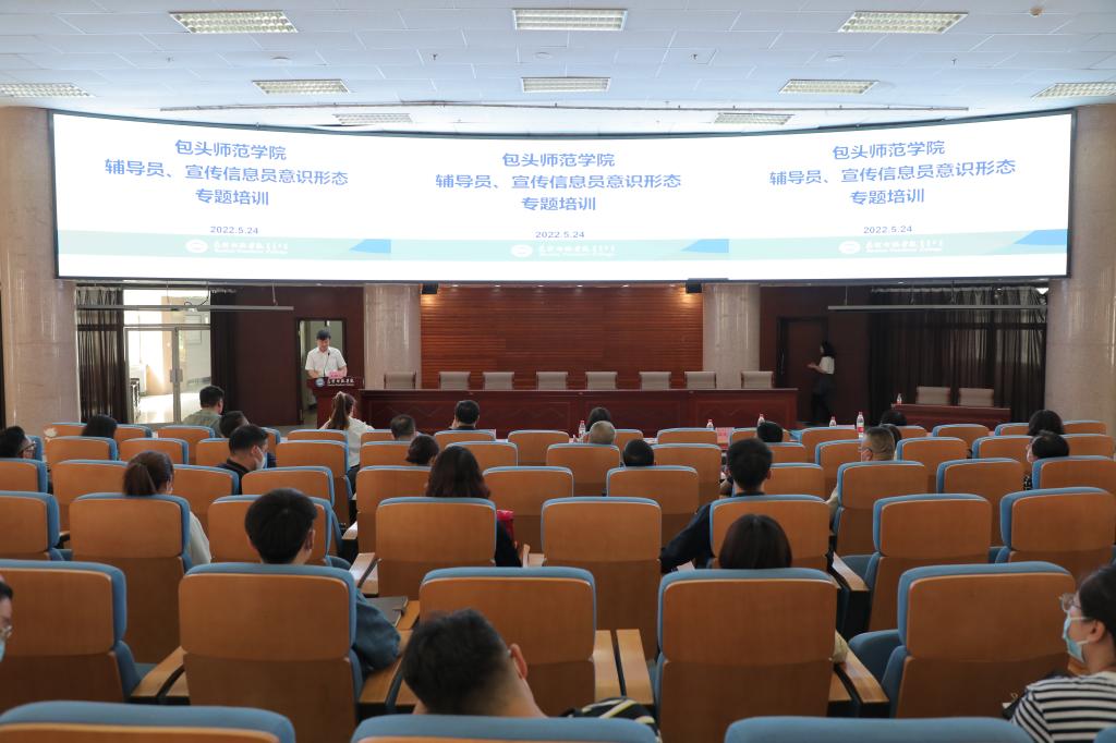 本次培训既是《包头师范学院2022年辅导员培训方案》安排的一项重要内容,也是学校新一届宣传信息员队伍建设接受培训前的一次预热学习。学生工作部部长薛志东主持会议,强调此次培训旨在深入贯彻落实习近平总书记有关宣传思想、意识形态和高校思政工作的重要讲话精神;全面推动学校意识形态工作责任制在基层落实落细,着力提升我校辅导员、宣传信息员防范化解意识形态领域风险能力,扎实做好大学生思想政治教育和宣传工作,切实维护学校意识形态安全。