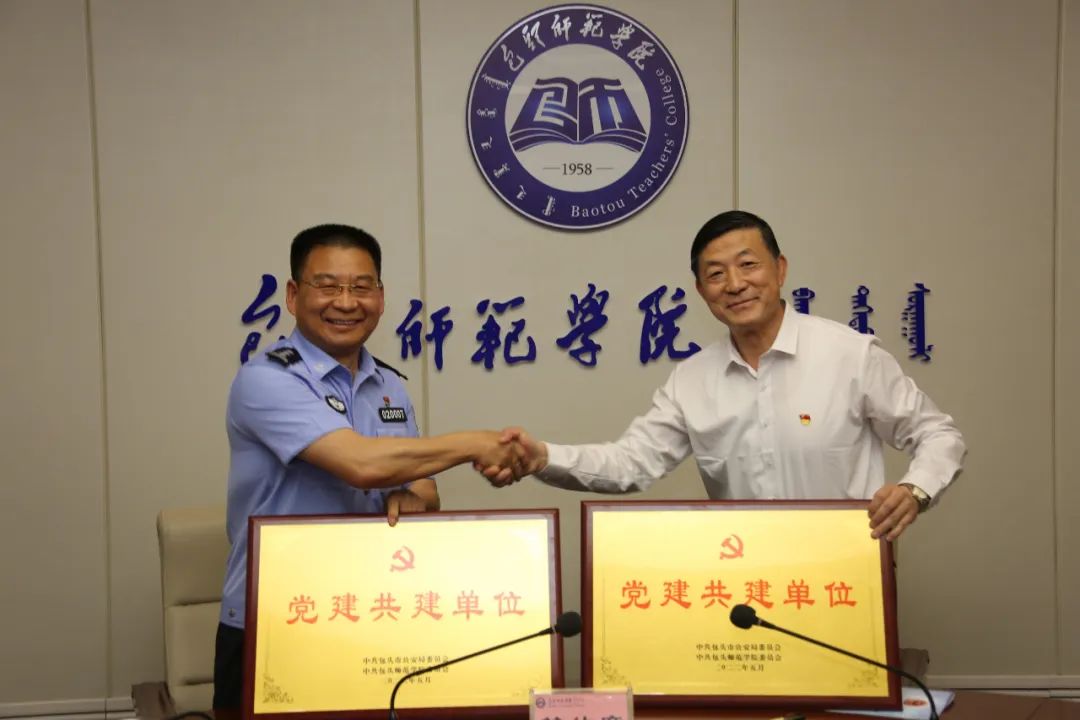 为进一步推动校地党建联动融合,促进党建工作高质量发展,5月23日下午,学校与包头市公安局举行党建共建合作签约仪式。市公安局党委委员政治部主任唐秦榛,校党委副书记施纪华,市局及我校各有关单位负责同志参加了活动,仪式由校党委委员、组织部部长史瑜主持。