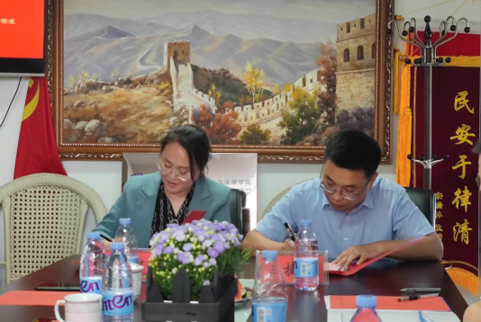政治与法律学院副院长李霞与内蒙古正捷律师事务所主任王乐签署了法学实习基地建设协议。随后双方举行了“法学实习基地”揭牌仪式。