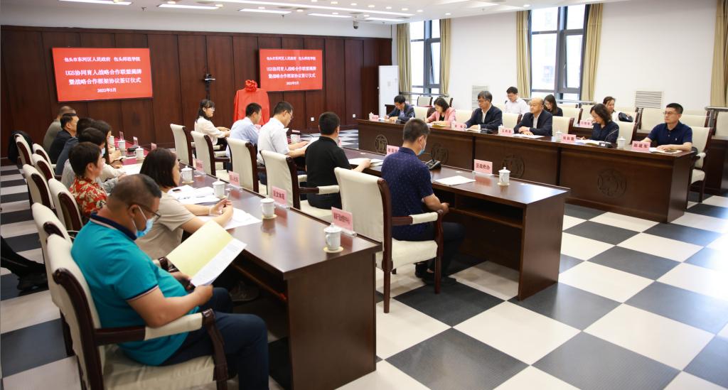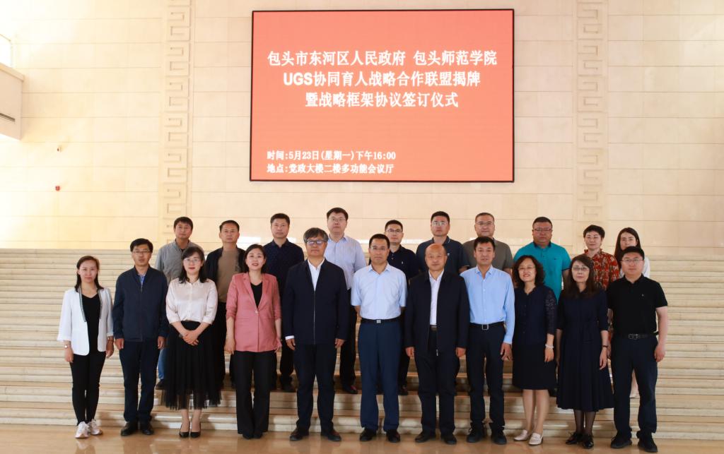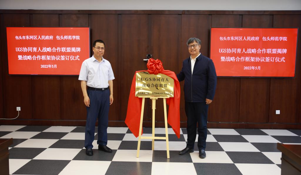 5月23日,我校与东河区人民政府在东河区党政大楼二楼多功能厅举行“UGS协同育人战略合作联盟” 揭牌暨战略合作框架协议签订仪式。校长金桩、东河区区委书记杨二喜出席并发表讲话。校领导王有亮、格根哈斯,东河区领导胡国瑞、张红艳及双方相关部门负责人参加了本次揭牌签约仪式。仪式由东河区委常委、副区长王林甫主持。