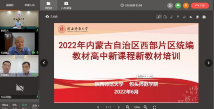 为全面贯彻落实内蒙古自治区党委办公厅、政府办公厅印发《全区民族语言授课学校推行使用三科统编教材和全面加强国家通用语言文字教育教学工作方案》文件精神,全面提升内蒙古自治区西部片区中小学教师对国家统编教材的理解和实施能力,由包头师范学院牵头、陕西师范大学负责组织实施的自治区西部片区2022年统编教材高中新课程、新教材培训工作于2022年6月15日开始。6日15日、6月16日、6月21日分别举行了内蒙古自治区西部片区统编教材高中思想政治学科教师、高中历史学科教师、高中语文学科教师培训开班仪式(线上)。陕西师大党委常委、副校长党怀兴,包头师范学院党委委员、副校长王有亮,包头师范学院党委委员、副校长双山出席了开班仪式,陕西师大教师干部培训学院、包头师范学院继续教育学院的负责同志参加了开班仪式。