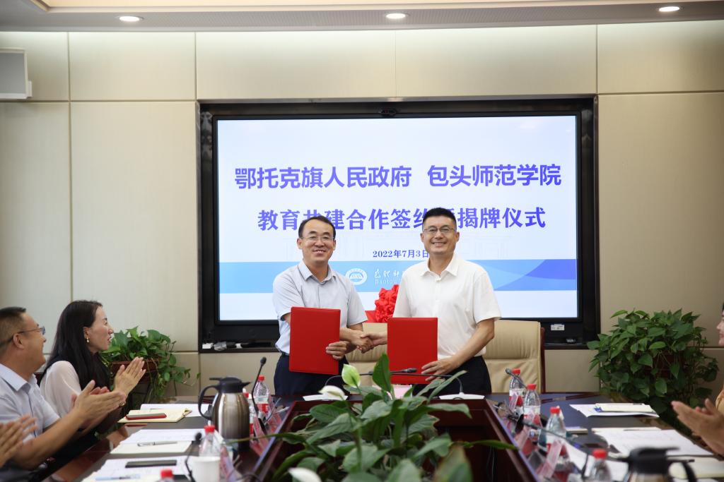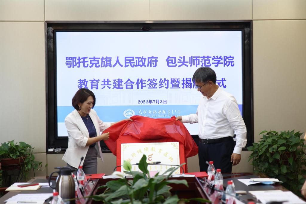 最后,金桩与崔婧共同为鄂托克旗教师继续教育基地揭牌。教务处处长赵建军与鄂托克旗教育体育局党组书记、局长石永峰代表双方签订了教育合作共建协议。按照协议,双方将在学生教育实习实践和教师继续教育培养等方面建立互助紧密的合作关系。(党委宣传部)