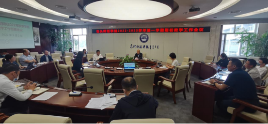 教务处副处长齐春燕就本学期的开学初线上线下教学衔接、补考、四六级考试工作进行了具体安排。教务处副处长王骞就达成度比赛、师范专业认证、2022届本科生毕业论文抽检、实践实习等工作进行了详细汇报。