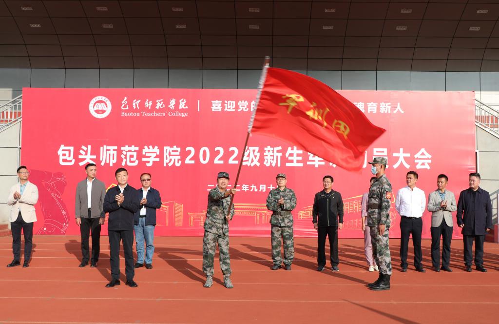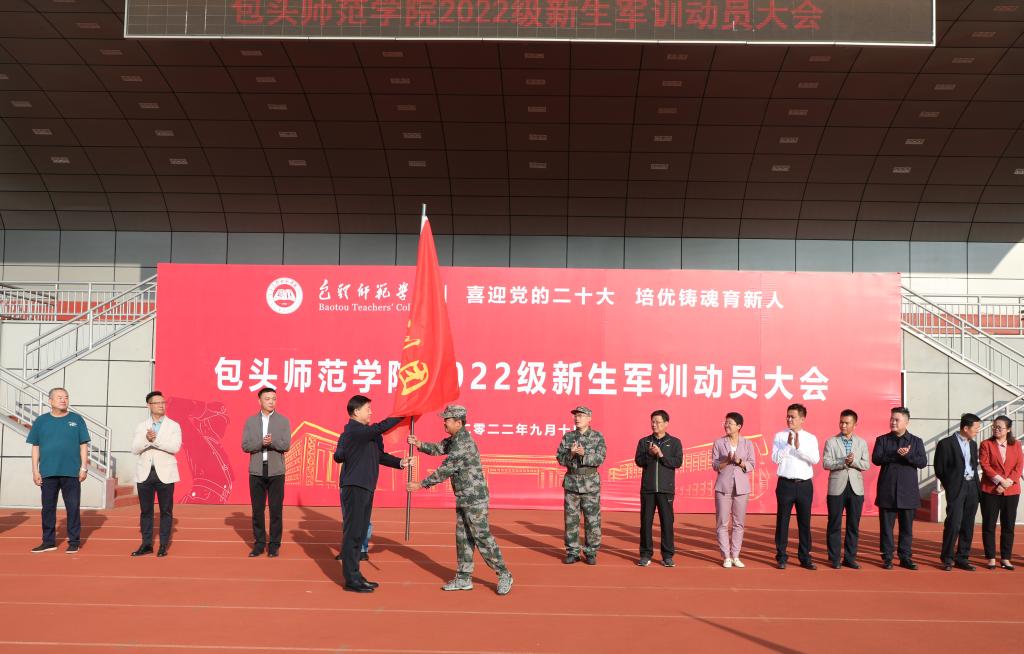 9月10日上午8:00,包头师范学院2022级学生军训动员大会在田径运动场隆重举行。校党委副书记施纪华出席会议,并向军训团授旗,军训团团长薛志东,军训团政委赵建军以及各二级学院分管领导、学工办主任、团总支书记和辅导员、班主任、全体军训教官、2022级新生参加了动员大会,学生工作部(武装部)副部长杜志敏主持动员大会。