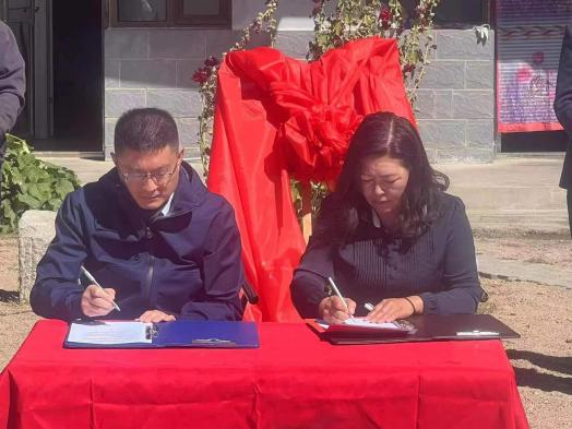 赵建军与实践教学写生基地负责人郝俊梅签署了实践教学协议,并为实践教学写生基地揭牌。美术学院院长刘英杰在致辞中表示,大英图写生基地是美术写生、民俗文化体验的绝佳教学地,近年来,吸引了大批美术专业学生和艺术家来这里写生创作。此次签约授牌标志着固阳县大英图村与美术学院校地合作迈入新的阶段,将凝聚师生通过写生创作、教学实习,为文化助力乡村振兴发挥更大作用。