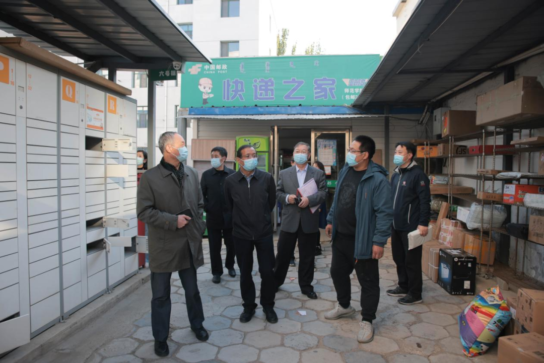 国庆节期间,校领导黄海、施纪华、双山、杨春生、格根哈斯及相关部门负责老师深入校园餐厅、超市、宿舍、快递站等地实地查看疫情防控工作,与师生员工一起共同抗疫,共度国庆。