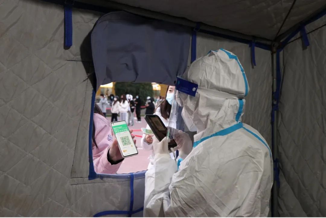 住在6号学生公寓的小李同学告诉实习记者,“同学们打开‘鹿城365’小程序找到健康码出示,核酸检测工作志愿者扫码即可录入信息进行核酸检测,非常方便。”“今天,学校的检测工作安排完善,各环节工作细致到位,学校根据宿舍楼号分时间段进行,有效分流,大大提升了核酸检测工作效率,我们排队的时间也减少了很多。”