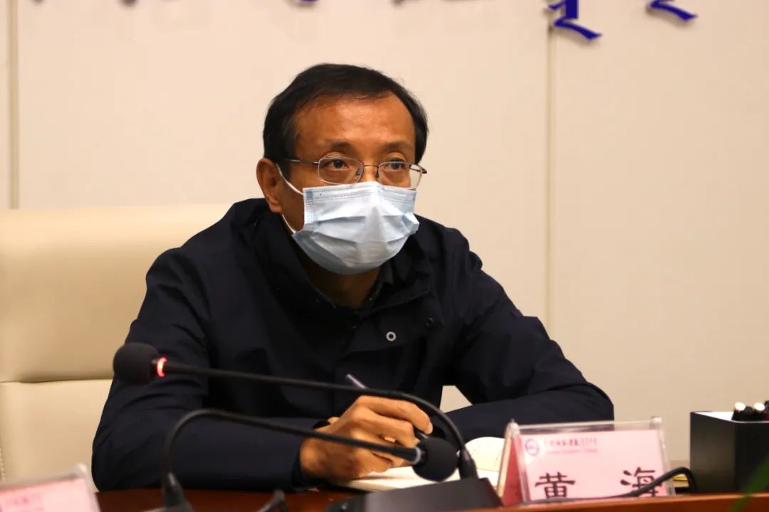 校党委书记黄海在会上讲话,对疫情防控工作进行再安排再部署。他提出五项要求:一要从思想上深刻、充分地认识当前形势的严峻性、复杂性、艰巨性,不能轻敌厌战,麻痹大意,存有侥幸心理;二要严防死守,严格闭环管理,保证校内和校外两个空间,尽量做到所有人员互不接触;三要进一步明确工作责任,要求校内人员必须亲力亲为,确定每个环节工作到位,不能有任何疏漏。要团结协作,全力以赴;四要有充分的思想准备,如果出现病例,不能慌乱,及时上报,及时隔离、封控,当断则断,果断处理,将影响和危害控制在最小范围内;五要严肃纪律,严格遵守工作要求,对违纪学生要严肃处理,对出现失职、渎职问题的工作人员也要严肃处理。