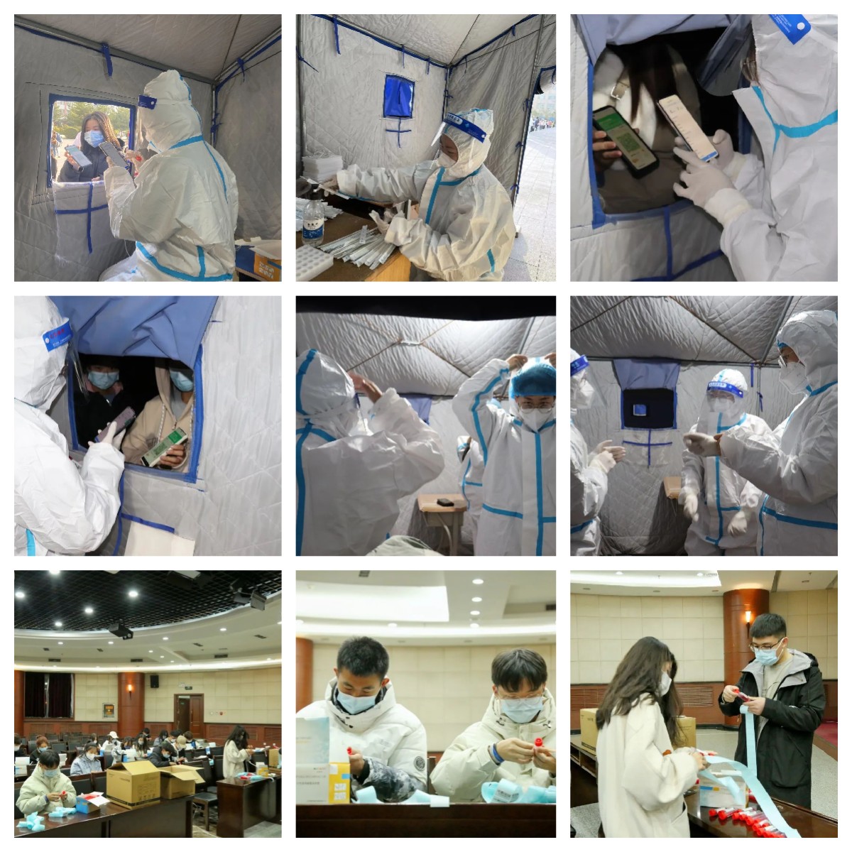 十月的包头,清晨格外寒冷。清晨5点,由学生组织成的核酸检测志愿者早早就来到了南北院核酸检测点,换防护服、试验信息录入APP、准备试管,一站就是一上午,有效保证了学校全员核酸工作的正常有序进行。