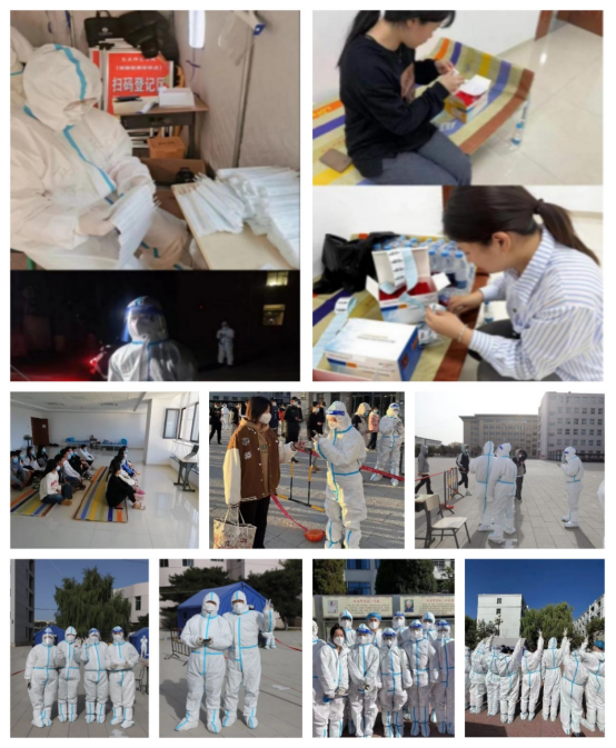 10月12日,在收到学校静默的通知时,作为党员的我们毅然决然,志愿加入学校的志愿服务队,进行全校的核酸检测工作。当我们穿上防护服的那一刻,我们四个人的肩上就多了一份责任。在领导、老师及学生干部的指导下,我们的工作进行的很顺利,同学们也积极的配合,我们相信,在我们全校师生的共同努力下,一定能够击退病毒,共克时艰!没有一个冬天不可逾越,没有一个春天不会来临,爱与希望,比病毒蔓延的要快......此刻,你我都要平安才好!——21专升本会计班 梁祯祯 赵莹 延敏 岳靖茹