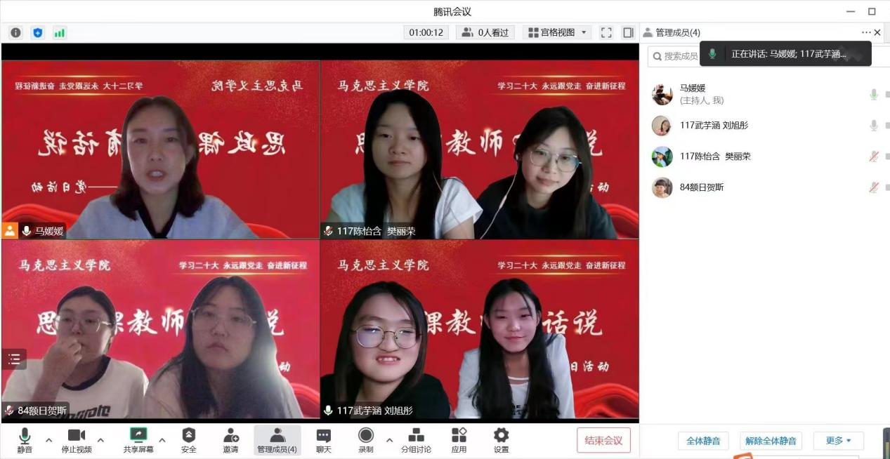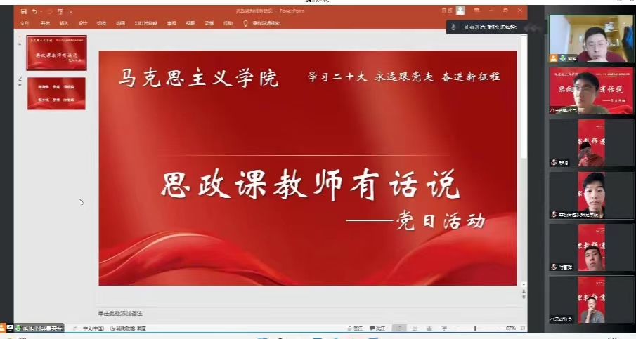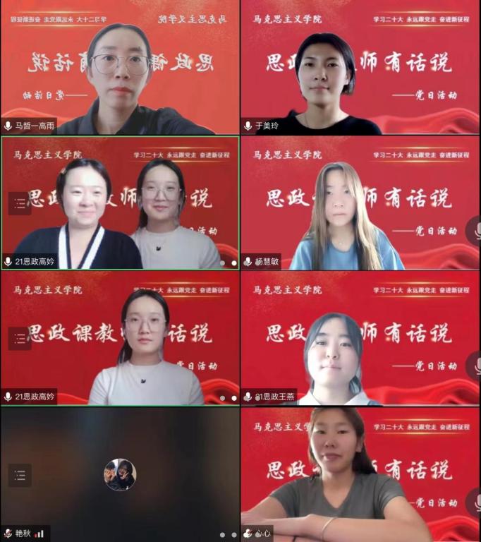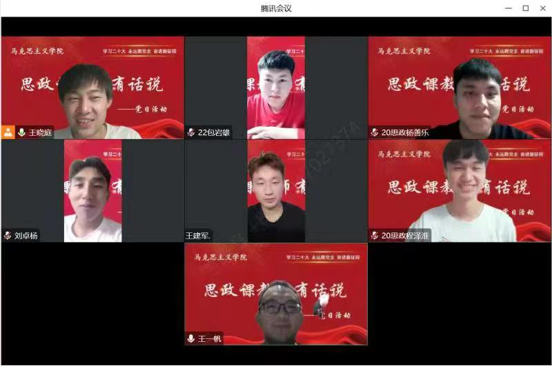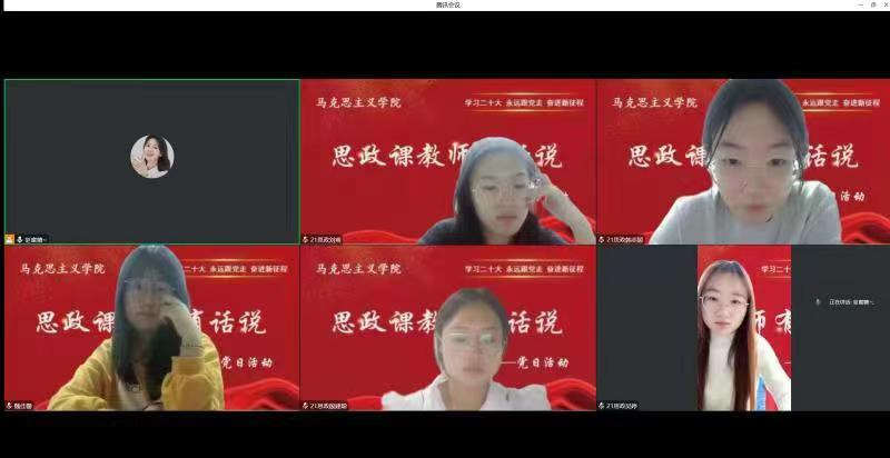 本次“思政课教师有话说”主题党日活动,既是思政课教师的云端思政小课堂,也是老师与学生间交流心声、相互鼓励的云端长谈。其中,有老师们的关心和关爱,更有同学们的理解与信任。我们坚信:在全校师生的共同努力下,疫情防控终将获得胜利!