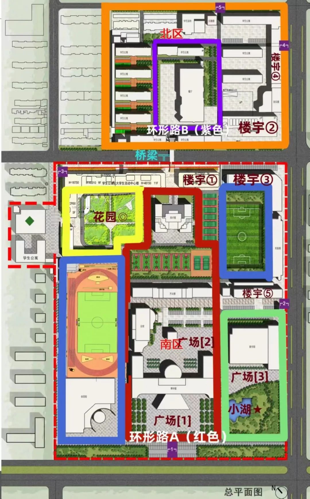 2. 北院学子广场外围“口”字型环形路B(紫色环形路)“我是北路哒!”大家一定在这两条道路上留下属于自己的足迹吧。