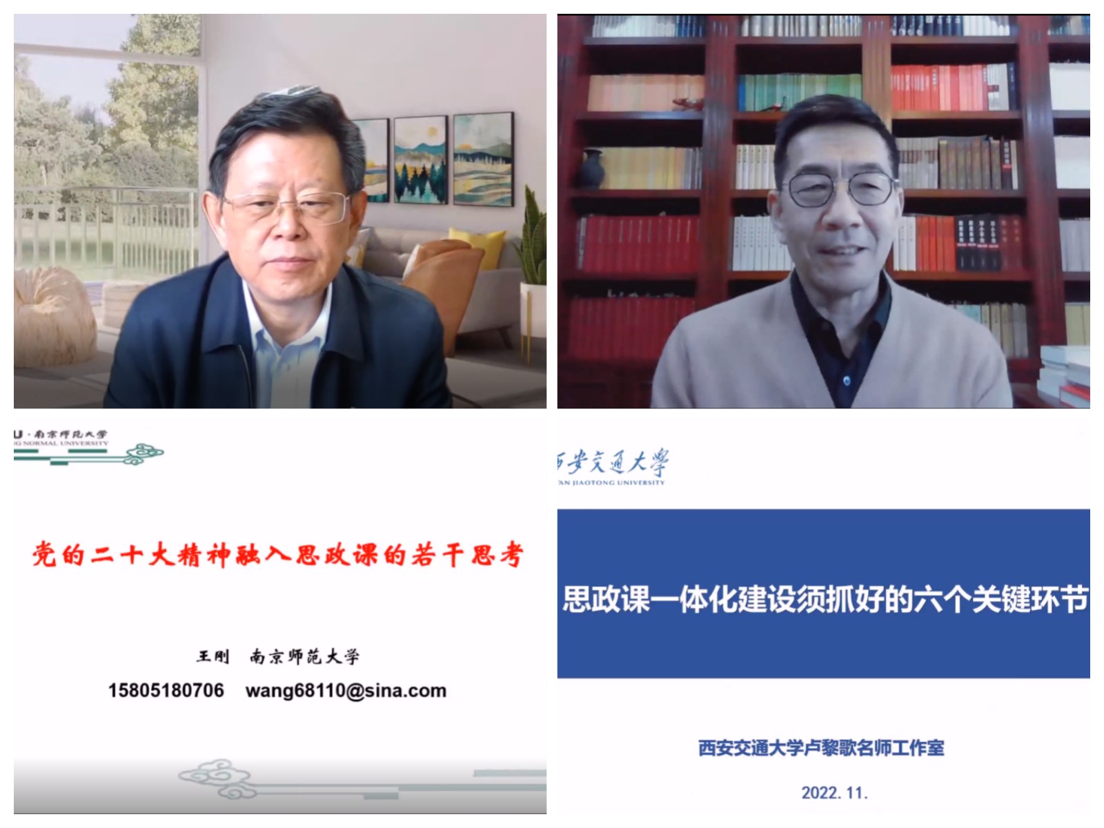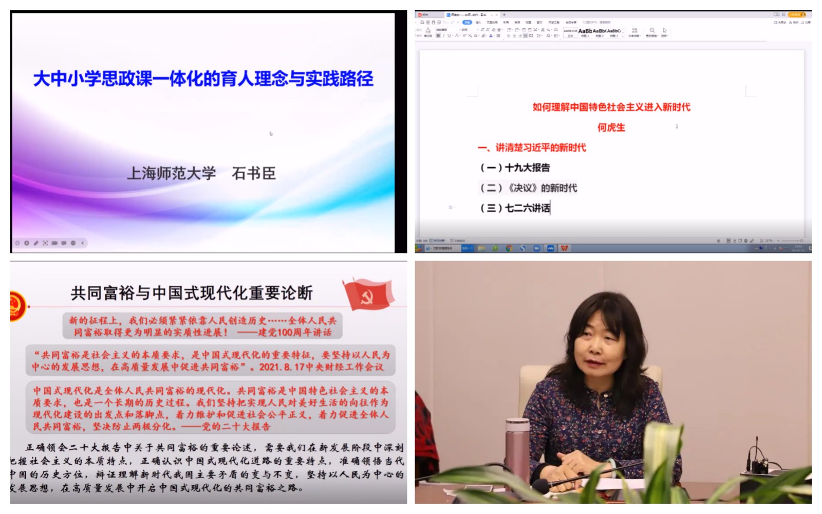 来自北京师范大学、中国人民大学、中国社会科学院、西安交通大学、江苏省习近平新时代中国特色社会主义思想研究中心、上海师范大学、南京师范大学、河南师范大学、安徽师范大学、北京联合大学、湖北经济学院等高校的专家们齐聚云端,就党的二十大精神、大中小学思政课一体化、党的二十大精神融入思政课教学进行了全方位、多角度地深入研讨,在线浏览量达1.2万次。
