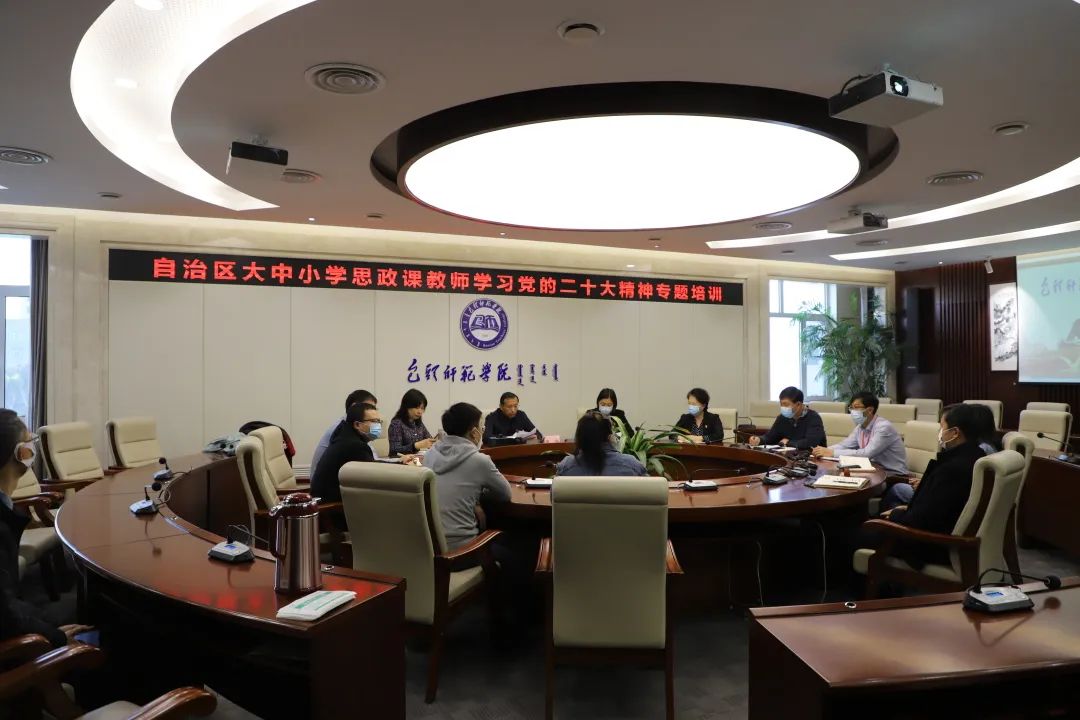 为学习党的二十大精神,加强我区大中小学思政课一体化建设,更好地推动党的二十大精神进课堂、进头脑,11月5日,在内蒙古自治区教育厅的指导下,包头师范学院马克思主义学院(内蒙古自治区铸牢中华民族共同体意识大中小学思政课教师培训基地西部片区、新时代大中小学思政课教育联盟等平台)举办了内蒙古自治区大中小学思政课教师学习党的二十大精神专题培训会。