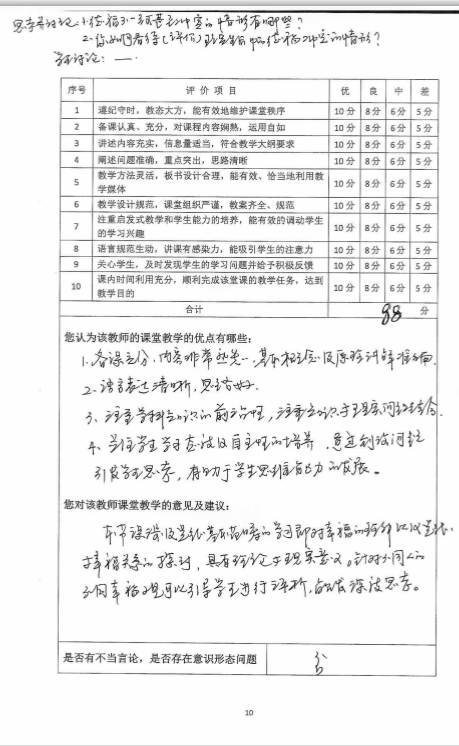 课程目标达成满意度评价(学生卷)