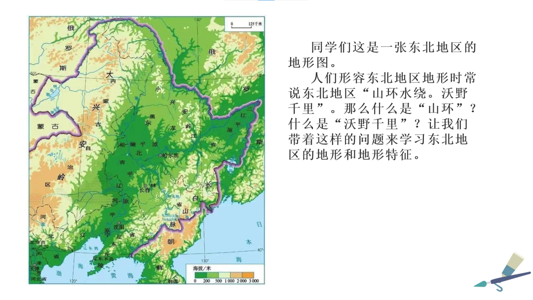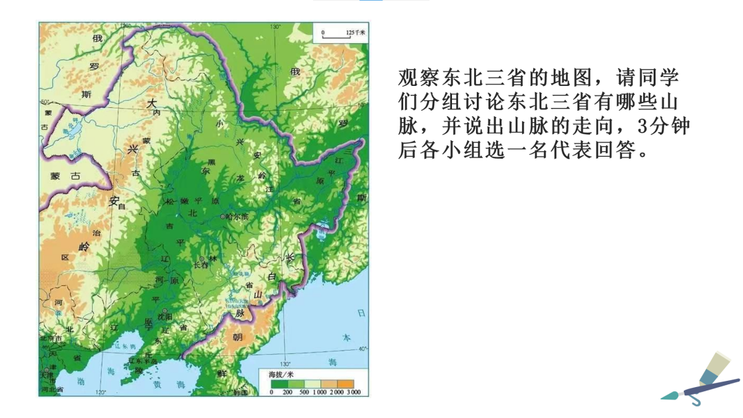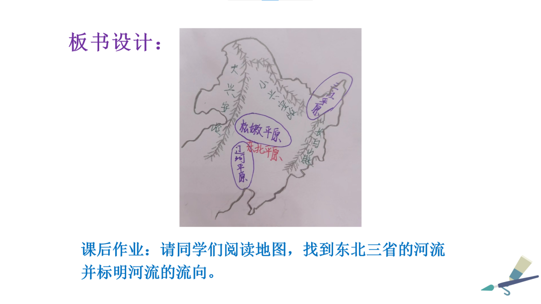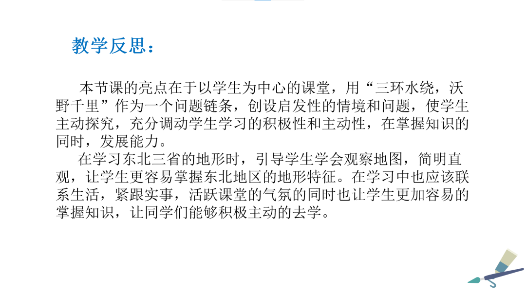 本教学设计案例是本学期资源与环境学院地理科学专业2020级地理科学一班秦倩倩同学的“东北三省地形”三分钟教学设计定稿案例。以下为秦倩倩的PPT页,基本能够体现本设计的实施情况与具体效果。