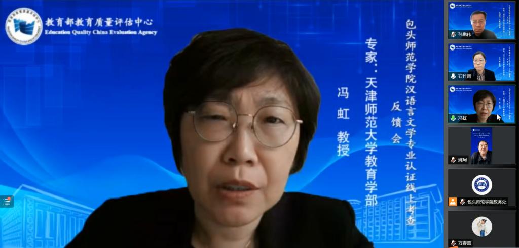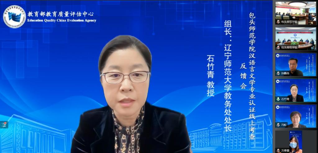 此次汉语言文学院专业认证工作11月8日正式开始,经过前期大量的资料调阅,11月21日至11月25日,专家组线上对汉语言文学专业开展师范专业第二级认证考查工作。线上考查期间,专家组共召开工作会议13次,与在校学生、访谈20人次,教师访谈52人次,专业负责人、学院领导和管理人员访谈5人次,校领导和相关职能部门负责人访谈14人次,用人单位、校友代表与实习基地负责人访谈30人次;查阅了认证专业提供的相关管理文件、教学档案和支撑材料,共调阅毕业论文(设计)36份,调阅试卷6门次共717份,实习报告和毕业生教育实习档案袋36份,调阅三习补充材料54份,调阅访谈补充材料40份,听课、看课8节次;访谈教育实习基地1家,考查了图书馆、包头师范学院教师职业技能训练中心、文学院演播实验室、包头师范学院普通话测试站和同屏互动教室、文学院师范生技能训练室、诗教办公室、包头师范学院大学生创业园等教学设施。