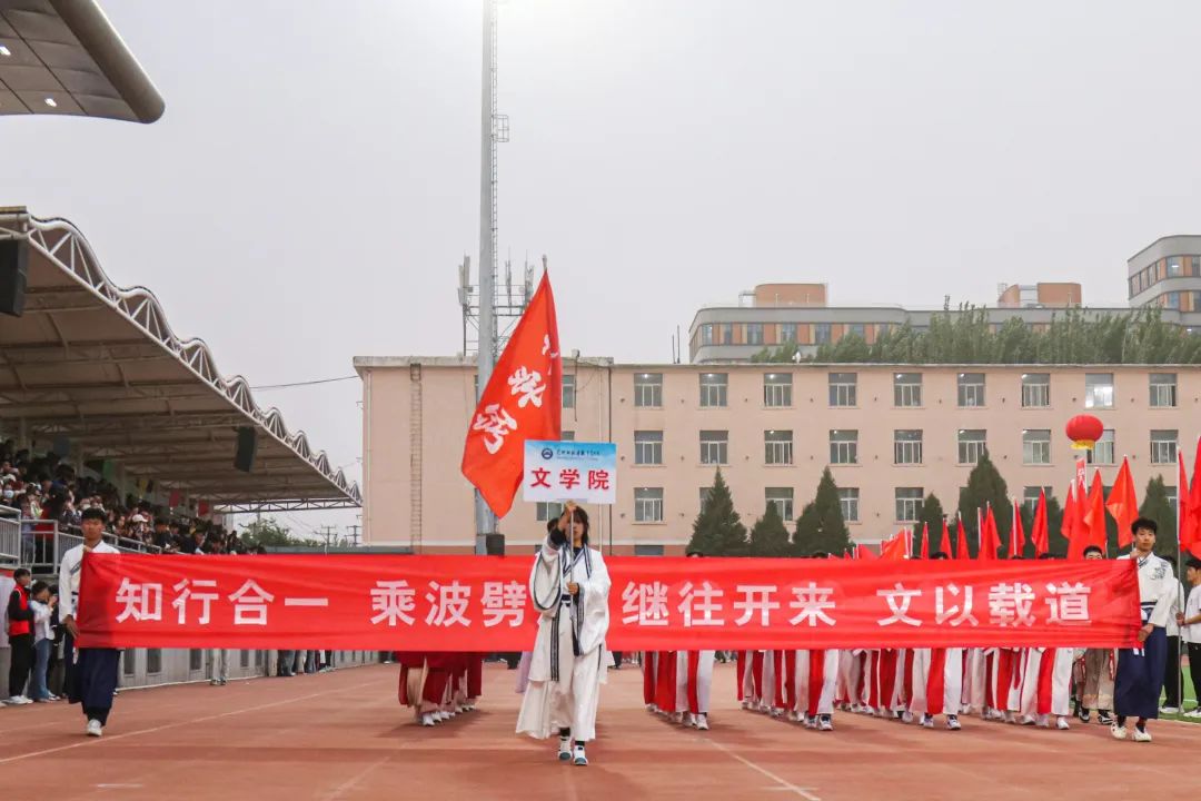 开幕式上,国旗(护卫队)、校旗队、彩旗队、裁判员队及各学院代表队步入体育场。现场师生向国旗行注目礼,奏唱国歌。耿嘉骏、翟博宇分别代表运动员、裁判员宣誓。