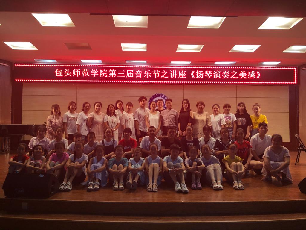 6月23日上午,著名扬琴演奏家、中央民族大学许学东教授在音乐学院博艺厅举行了关于《扬琴演奏之美感》专题讲座。我校民乐专业师生、包头市爱好扬琴的中小学生及社会扬琴爱好者近260人参加本次讲座活动。