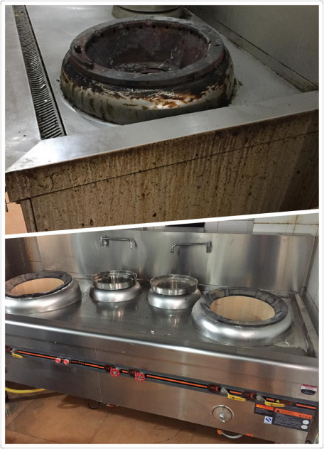 同时,还更换了南、北院老旧20层蒸汽蒸车和高功率电饼铛各5台、双头燃气灶1台。老旧蒸车因使用年限过长,密封性下降,个别箱腿腐蚀断掉勉强用砖头支撑,跑冒蒸汽有烫伤操作人员的危险,也会因蒸汽跑冒导致饭菜烹饪时间无法准确估算,严重影响饭菜质量和口味。电饼铛也因使用年限较长,导致加热不均匀,甚至原双面加热板仅有一面能正常工作,为食材的制作造成一定影响。