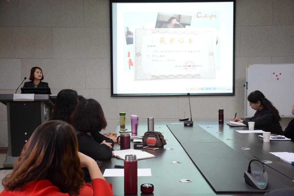 接着,有着12年教龄的王月莲老师从感悟、成长、困惑、展望四个方面讲述了她在教育科学学院多年的工作经历。她先用自己四个不同阶段的照片阐述了12年里自己的变化与成长。又从“学校平台为支撑”、“前人引领进步快”、“勤于反思行于惑”三方面总结了自己在专业上的成长。最后针对自己从教多年的困惑提出了展望,并表示“言爱无利育人魂”,要做一个有爱的教师。