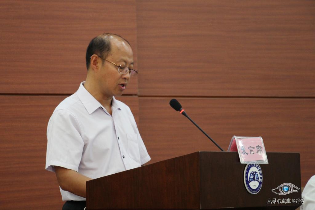 会议共三项议程,首先由学校党委委员、组织部部长郭金虎同志传达了自治区党委“两学一做”学习教育推进会精神;之后,数学科学学院党总支、经济与管理学院党总支、图文信息中心党总支以及文学院教工第二党支部等四个示范党支部就基层党组织开展“两学一做”学习教育工作进行了交流发言;最后,学校党委书记王永明同志做了重要讲话。王书记强调,各党总支、党支部一定要认清形势,切实增强责任感和使命感,努力把学习教育抓紧抓好、抓出成效,并提出四点意见,做到“四个着力”。一要着力抓好习近平总书记“七一”重要讲话精神的学习贯彻工作,二要着力在健全完善以党支部为主体的日常学习教育制度方面多下功夫,三要着力整改好党建工作中存在的突出问题,四要着力以实实在在的作为推动工作和事业发展。
