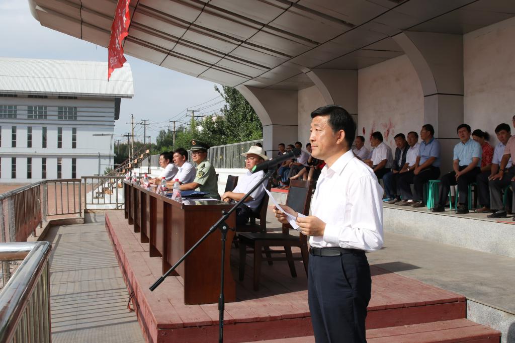 随后由党委副书记、院长刘兴旺向军训团授旗。学生工作部、武装部部长尚海涛宣读了《包头师范学院2016级新生军事技能训练工作方案》,就军训工作做了系统部署。