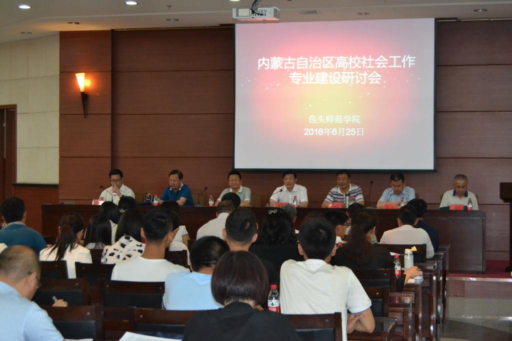 2016年6月25日,包头师范学院政治与法律学院隆重召开大会,庆祝政治与法律学院社会工作专业建立10周年,特召开“内蒙古自治区高校社会工作专业建设研讨会”。研讨会设立两个分会场,第一分会场在我校博学楼729会议室举办。主题为 “社会工作专业建设与人才培养”。