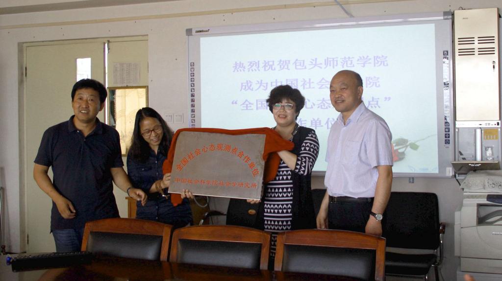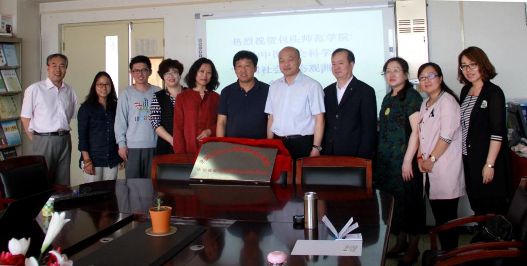 6月6日上午,中国社会科学研究院“社会心态观测点”挂牌仪式在我校博学楼731室举行。挂牌仪式由教育科学学院院长郝红英教授主持。中国社会科学研究院社会学研究所社会心理学研究室主任王俊秀博士、陈满琪博士、高文郡博士、谭旭运博士,包头师范学院副院长王有亮、科技处处长董贵成、教育科学学院应用心理学专业部分教师出席仪式。