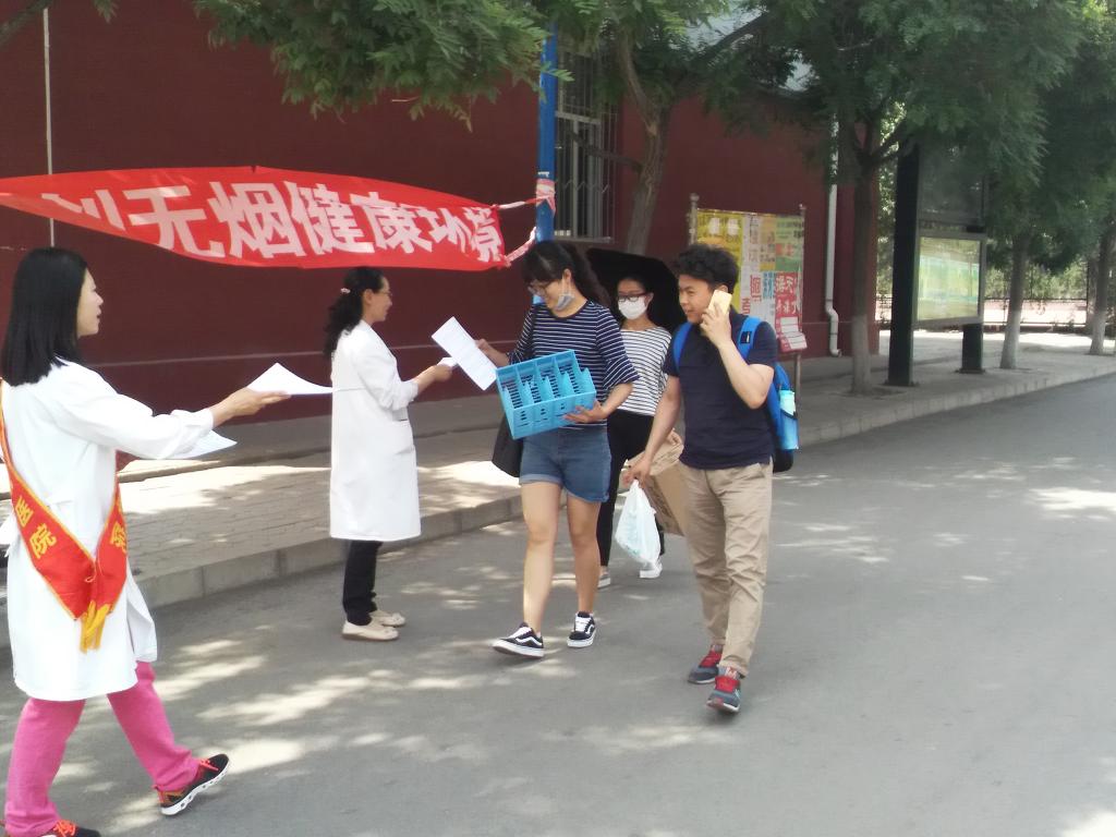 世界卫生组织将每年的5月31日定为世界无烟日。活动中,医务工作人员在齐志楼前设立了控烟宣传点,通过扩音器宣传控烟知识,并向师生发放了控烟宣传资料。在第一学术报告厅、食堂宣传栏、齐志楼宣传栏、后勤处宣传栏等宣传点张贴了精心设计制作的控烟宣传海报,内容包括烟草对人体的危害、被动吸烟对健康的危害、如何科学戒烟等科普知识。
