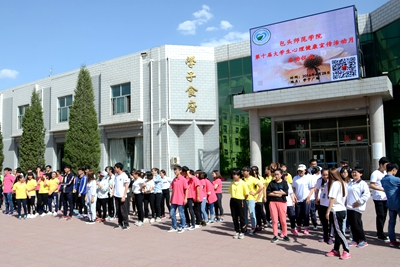 包头师范学院第十届大学生心理健康教育宣传活动月启动仪式于4月28日下午三点在我校北院学子广场进行。现场参与人员为大学生心理健康发展协会全体成员及我校各学院学生代表。学工部部副部长郭志峰、大学生心理发展指导中心主任郭仰东及各二级学院学工办主任出席启动仪式。现场活动由美术学院学工办主任康树林主持。